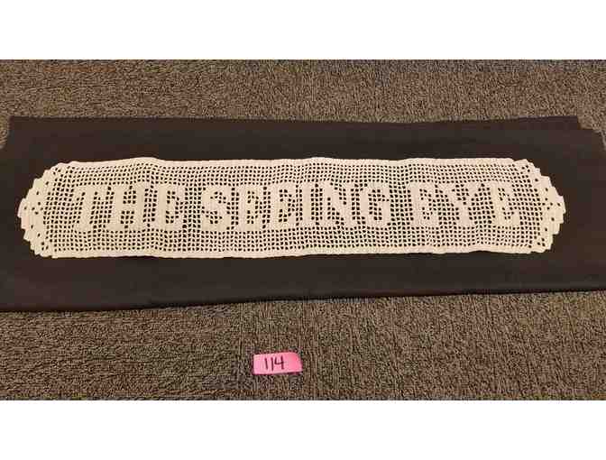 Crocheted table runners are wonderful for adding a vintage and elegant touch to your home decoration!  This table runner has the words "The Seeing Eye" crocheted in the center.  The Seeing Eye is celebrating its 90th anniversary this year, and this would be a great memento!  Measures approximately 32” (l) x 6 ¼” (w).