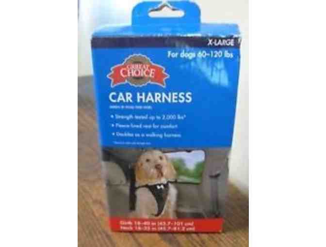 This car harness also doubles as a walking harness! It offers safety for both car rides and walks. Your dog will be able to lie down comfortably while in the harness and the vest portion of the harness is fleece-lined for extra comfort. Harness is strength tested up to 2,000 lbs. Size XL for dogs 60 – 120 lbs. with girth 18”-40” and neck 18”-32”.