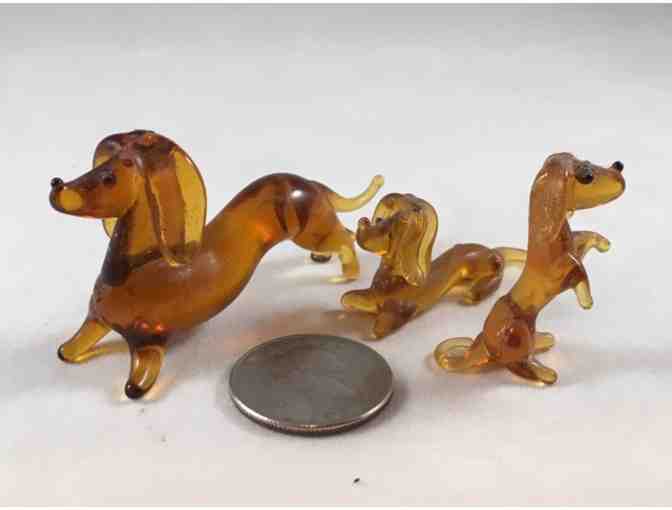 Look at these beautiful pieces! Truly a one-of-a-kind set! The glass is a lovel carmel color. You are not going to find these pieces anywhere else. These came from an estate of a woman who just loved dachshunds!