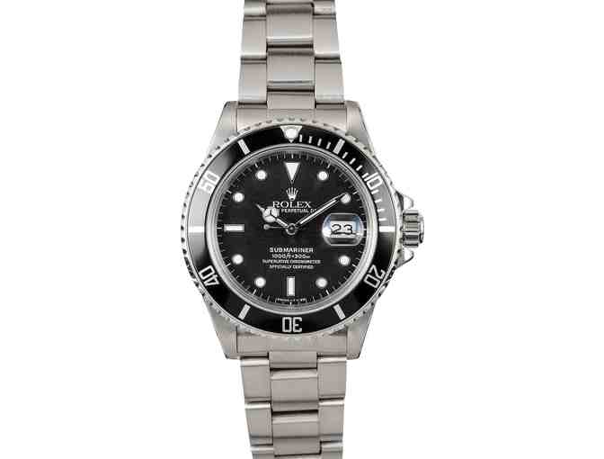 The Submariner Rolex is considered a sports/and/or diver's watch and is a very practical and durable timepiece as it looks great with a tuxedo or pairs well with a pair of jeans. This Submariner has an all stainless steel case with a 40 mm black dial as well as an all stainless steel rotating bezel. It is an automatic watch with a date calendar window and Sapphire scratch resistant crystal. It has an all stainless steel oyster bracelet. It is a rare find, as this particular Model, the 168000, had a very short period of production from 7 to 9 months between 1987-1988. This watch is pre-owned and has been completely serviced and refinished with genuine Rolex parts by a certified Rolex dealer. Reference number is: 168000, and serial number is: R495962. This Rolex comes with a 2-year warranty. Buy this Rolex somewhere else and tax is at least $500!