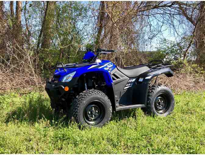 Hit the woods or Cruise the neighborhood with this Fuel Injected 443CC SOHC liquid cooled 4WD ATV. With custom 12” polished aluminum wheels, a 2” hitch receiver and Full instrumentation Pkg. this “Go Anywhere” quad will get you there in style! Other features include a 2500lb WARN Winch, CVT auto- matic transmission with reverse, 4 wheel inde- pendent suspension with 5 position preload adjustable shocks, Full light package, 1050lb towing capacity and a sealed filter intake system for those mudholes that were deeper than you expected. Donated by Outdoor Motorsports. This quad is everything you would desire in an All Terrain Vehicle