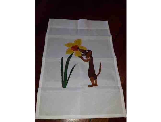 Dachshund Sniffing a Daffodil, 11.5"x17.5", single-sided design