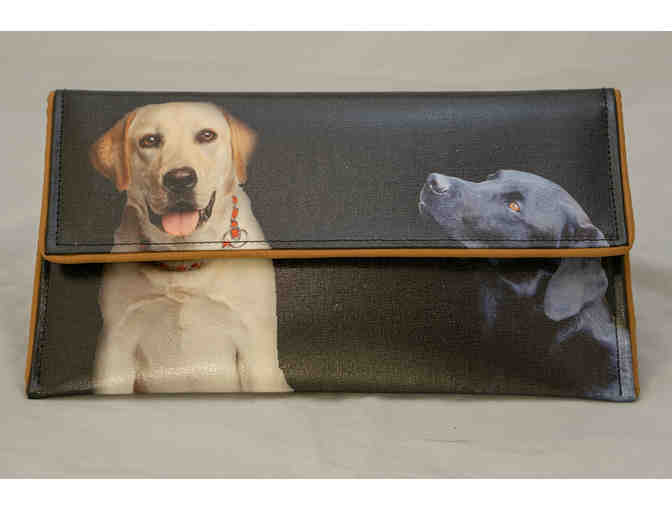 Play fetch with this Labrador Retriever dog canvas clutch purse. Hand crafted to perfection. All bags come with a removable cross-body chain, logo dust bag, clear vinyl inner pocket, and are individually signed. Inside fabric may differ from what is pictured. Price includes shipping.