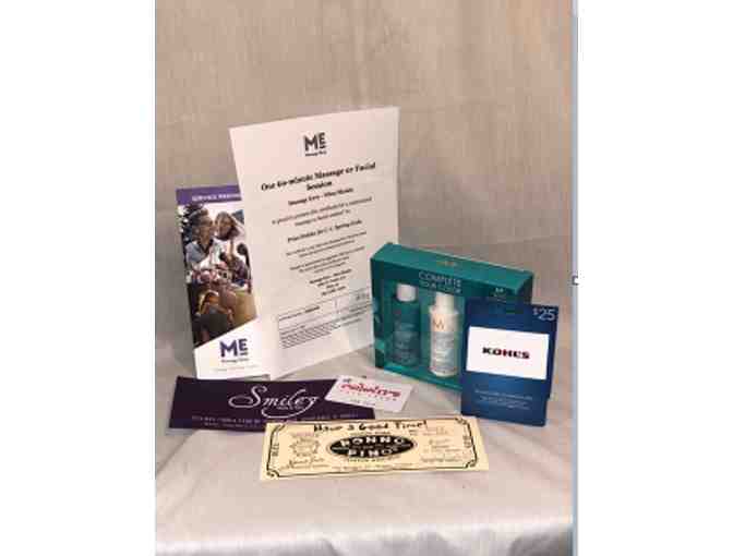 Hair Cut & Color (Colours Hair Salon), Moroccanoil Hair Products, Manicure (Smiley Nails), One Hour Massage or Facial (Massage Envy), $25 GC Kohl's & $40 Gift Certificate to Nonno Pino's