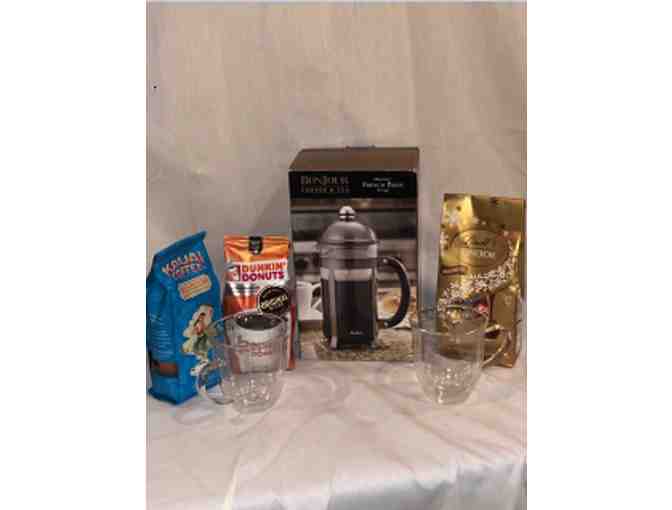 Coffee & Tea - 8 Cup French Press, 2 Mugs, Two Packages of Coffee & Bag of Chocolates