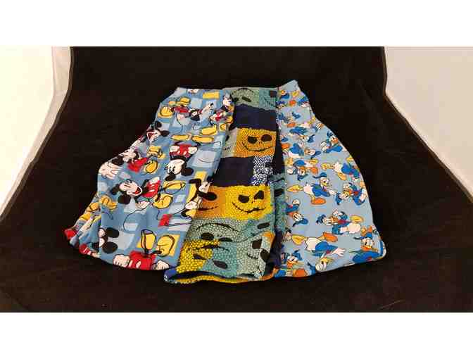 - Mickey Mouse: Medium blue background scattered with traditional Mickeys in red shorts and yellow shoes.