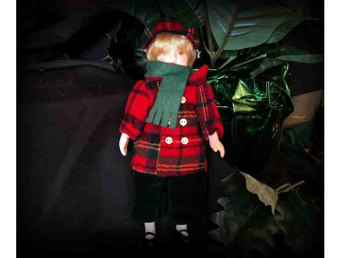 Dressed in plaid for the holidays, this vintage Marian Yu doll stands 9" high. A striking addition to any decor.
