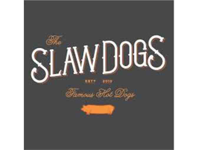 Catering at home or office for 12 people from Slaw Dogs. Includes an assortment of 12 slaw dogs and sausages, Thai-slaw, organic chips, and cookies. Vegetarian options available upon request.