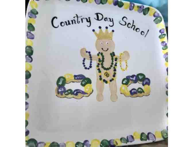Painted King Cake platter including 1st Grade students' fingerprints and names