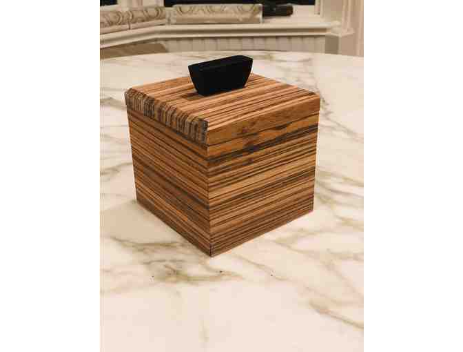 Bid on a autographed box constructed of exotic zebra wood. The dimensions are 4 x 4 x 4 high. Inside are 3 x 3 square autographs of all the fourth graders, Class of 2021. On the back of their signed autograph paper will be their birthday and astrological sign that they drew, giving memories that will last forever.