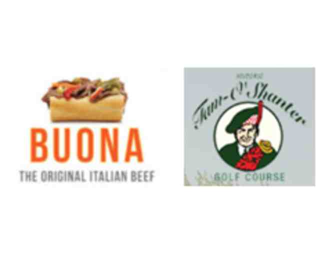 Certificate for Twosome of Golf w/cart & $25 GC Buona Beef