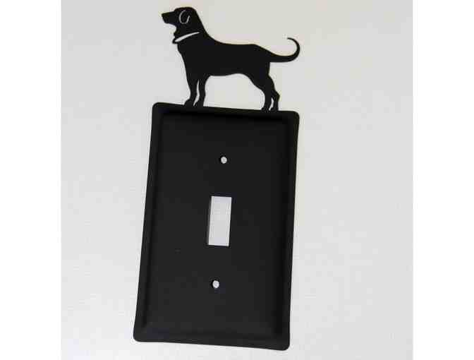 This set of two, single switch plates features "The Black Dog" brand's classic dog profile on the top of the plate. Made of black wrought iron, these switch plates are perfect for any dog lover's home!