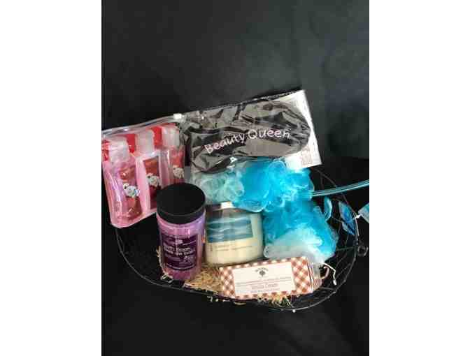 This would make a nice Mother's Day gift. This basket features a cherry blossom scented body wsh, lotion and shampoo, a loofa, a bath sponge and lavender bath beads. There is also vanilla cream pure vegetable soap and a Pier 1 three-wick Ocean-scented candle and an eye mask. This is the perfect thing to put her at peace with the world.