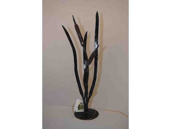 Add new dimension to your garden with these Cattails, wrought-iron sculpture by Les Banach. Two steel gray iron flowering spikes and three flat blade leaves are the perfect accent to your indoor or outdoor garden.