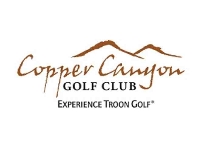 An 18-hole round of golf for four with carts at Copper Canyon Golf Club in Buckeye, AZ. Foursome not allowed to be split into two groups of two. Appropriate golf attire is required. Valid anytime Monday-Thursday, and after 11:00am Friday-Sunday. Not available January 1 - March 31, 2020. Reservations can be made up to three days in advance by calling 928-252-6783. Certificate expires March 31, 2020. Visit http://www.coppercanyongolfclub.com.