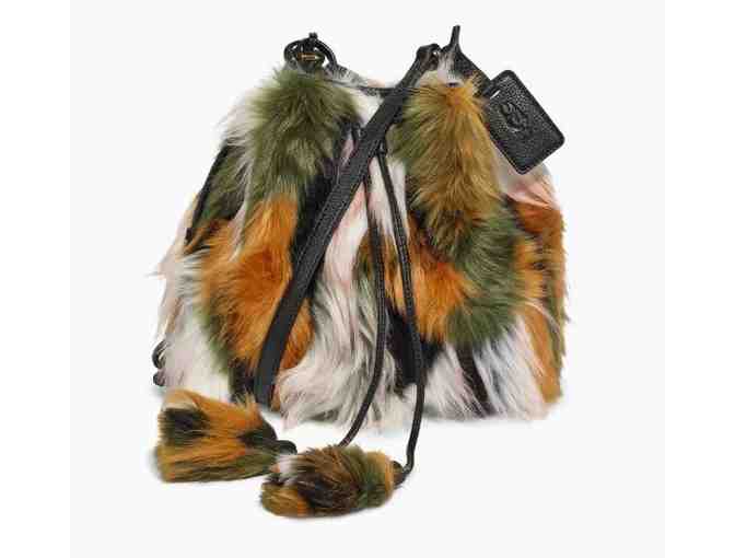 Crafted from a colorful array of patchwork faux fur, the Lidiya bucket bag features an adjustable strap that you can easily sling over your shoulder. Pair with a turtleneck top and high-waisted denim.