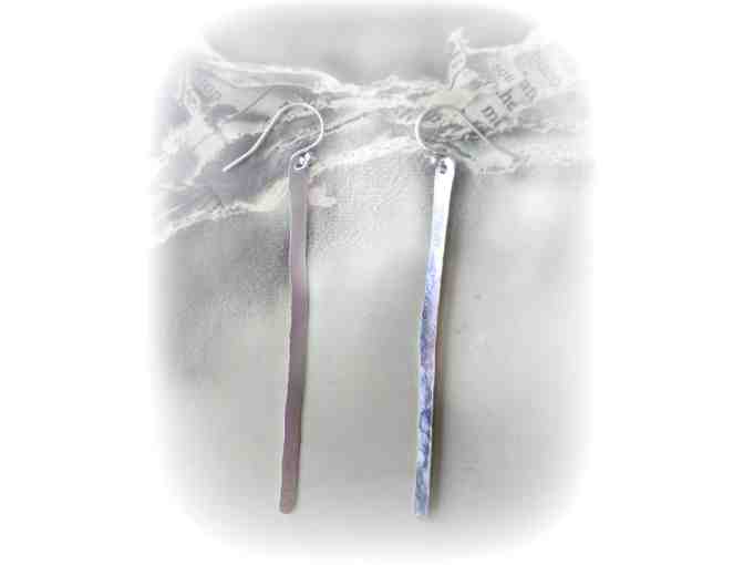 These Argentium Silver earrings are a fan favorite! They are thin, lightweight and comfortable with plenty of shine to dazzle. They remind me of tinsel and whether you are stepping out in Tinseltown, NYC or points beyond, you will be so glad you have your icicles to catch the light of the moment. They measure a generous 2.5" from the top of the earring hook to the bottom of the icicle. They are hand forged so of each one is different and every pair unique, designed to catch the light for maximum sparkle. The ear wires are solid Argentium too. Argentium Silver is a new silver alloy that is taking the jewelry world by storm. It is purer than Sterling Silver, tarnish resistant, hypoallergenic and 100% recycled!