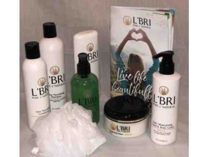 L'Brie Pure n' Natural Daily Cleansing Liquid Hand Soap, Daily Moisturizing Hand & Body Lotion, Intense Body Butter, Aloe Nourishing Shampoo & Conditioner, Body Wash, Cleaning Pouf Donated by Kay Reppen