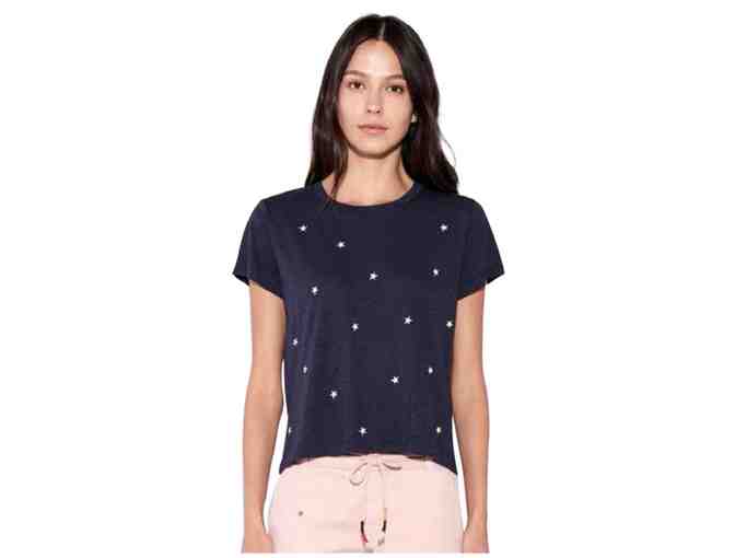 SHORT SLEEVE CREW NECK TEE CUT IN SLUB COTTON. FEATURING ALL OVER PRINTED HEARTS AND STARS, AND CENTER BACK SEAM. CROPPED BOXY SILHOUETTE.