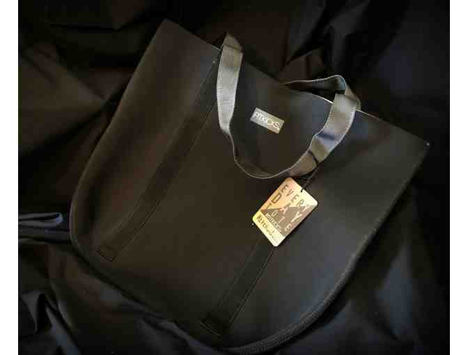 FitKicks Everyday Reversible Black/Gray Tote is perfect for your daily routine, inside and out. This multi-functional reversibel tote made of neoprene can be used for carting anything -- anywhere. This tote is durable, water-resistand and quick drying. It measures 8 x 4 x 8".
