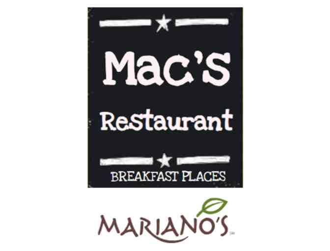 $25 gift card to Mac's Restaurant and $25 gift card to Mariano's