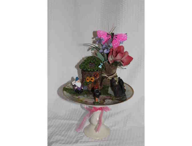 Beautiful Fairy Garden on top of a pedestal
