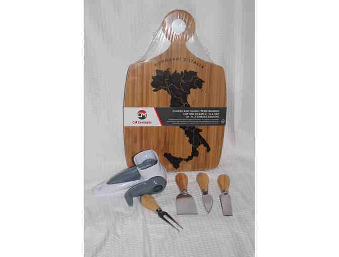 - Cheese Board, Charcuterie Cutting and Serving Tray - Premium Eco Bamboo with a Map of Italy Cheese Regions