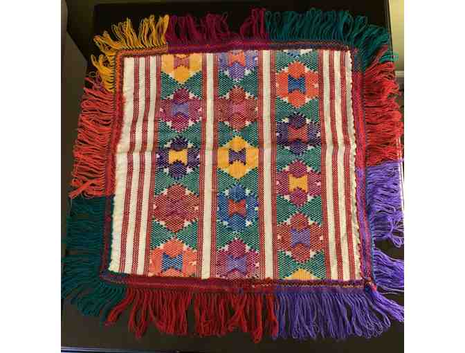 Decorative Hand-Woven "mantelitos" center table cloth from Xochistlahuaca, Guerrero, Mexico.