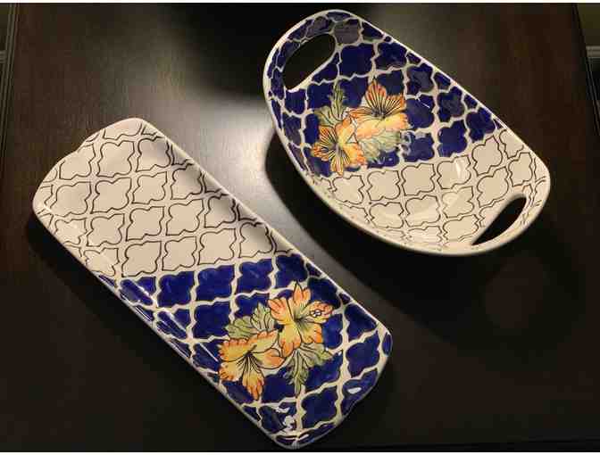 Beautiful hand painted Poterie Slama made in Tunisia serving bowl and plate