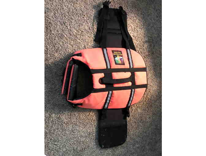 The life vest by Outward Hound is a small and fits chest size 18” to 24”.