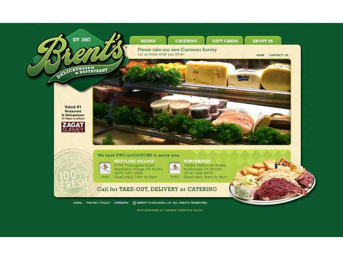 Nosh to your heart's content with this $50 Gift Card to Brent's Deli. Use it at either the Northridge or Westlake Village, CA location.