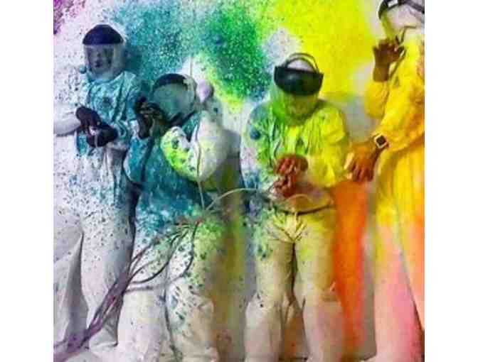 BEAT THE BOMB is a 1-hr team game to defuse a paint bomb… or get blasted! Mixing the best elements from escape rooms, immersive theater, and 80s action movie endings, players wearing hazmat suits must use intelligence, speed, and stealth to defeat high-tech “security systems” (multiplayer games) and defuse a paint bomb before it blasts them! Looking for a fun night out? A kids’ birthday party? A corporate test of teamwork + communication? Look no further!