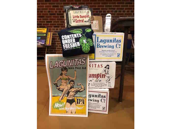3 cases of Lagunita's beer, T-shirt, bottle opener, glass mug, poster