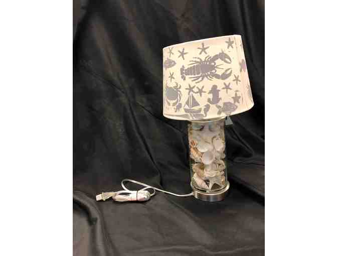 This table lamp filled with seashells by the kids of Katie and Laurel's is sure to brighten your evenings and warm your hearts.