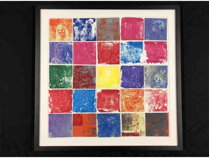 Colorful collage of prints made with love by the kids in Nick and Ashely's class.