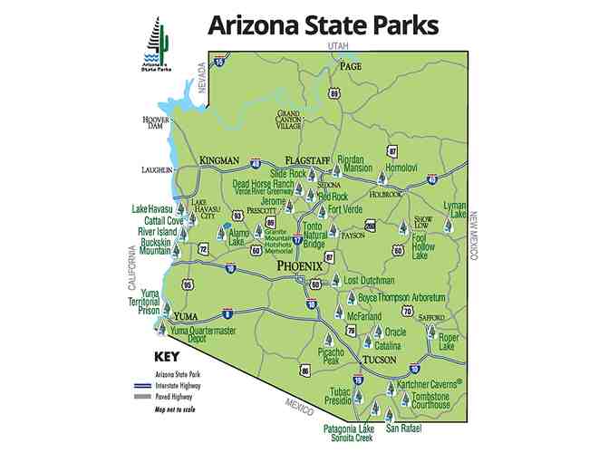 An annual Standard Free Day Use Pass, allowing a carload of guests free day access to more than 30 state parks across Arizona. Visitors can enjoy unlimited visits for boating, hiking, fishing, mountain biking, and historic / museum sites for a full year.