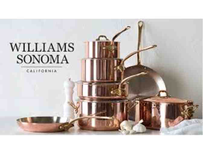 $50 gift card for the world of Williams Sonoma--products thoughtfully designed, thoroughly tested, and made with care. Choose from cookware, cutlery, kitchen appliances, bakeware, dinnerware, table linens, gourmet food, and much more. Williams Sonoma locations in the Bay Area include Walnut Creek, San Francisco, San Mateo, Corte Madera, San Ramon, Pleasanton, and Sonoma.