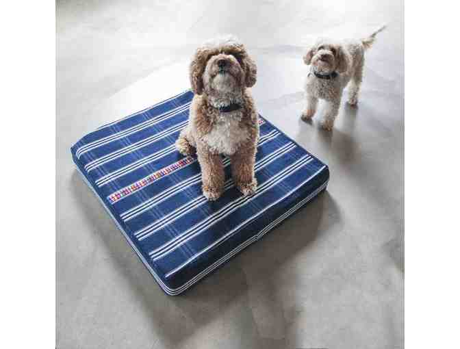 This dog bed is repurposed from vintage Mayan textiles, which were woven on a footloom and feature a hand-embroidered "randa" or decorative seam. Double sided so it can be flipped between washings.