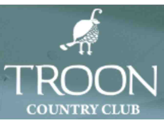 An 18-hole round of golf for four with carts and practice facilities at Troon Country Club in Scottsdale, AZ. Foursome not allowed to be split into two groups of two. Golf appropriate attire required. Valid from May 1 through September 30, 2019. Must call pro shop at 480-585-0540 for tee time. Certificate expires September 30, 2019. Visit https://www.trooncc.com/.