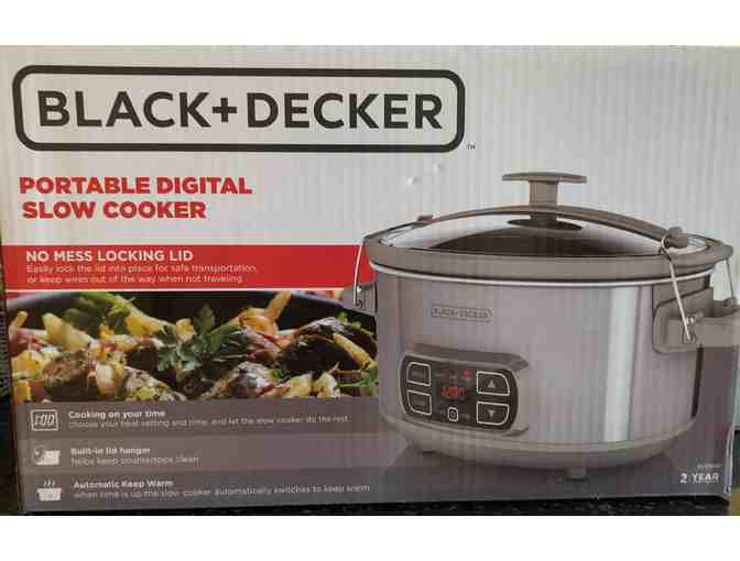 Cooking on your time! Choose your heat setting and time, and let the slow cooker do the rest. Built-in lid hangar helps keep countertops clean. Automatic keep warm -when time is up the slow cooker automatically switches to keep warm. No mess locking lid. Easily lock the lid into place for safe transportation, or keep wires out of the way when not traveling. Tempered glass lid to view meals while they cook. Removable stoneware liner cleans easily and is dishwasher safe. Seven quart size, large capacity for 8+ servings. Three settings: Low, High, and Keep Warm. Oversized cool touch handles ensure a comfortable grip from kitchen to car and back.