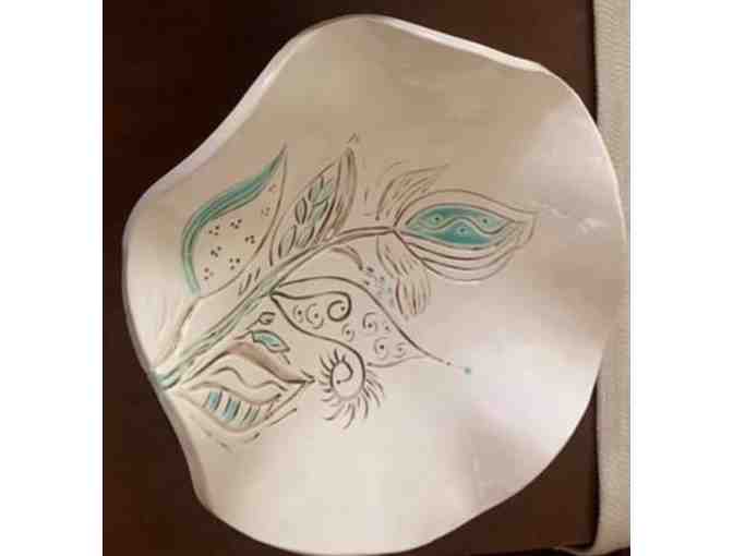 "In the Garden" Ceramic Carved Footed Bowl - Donated by Artist Barbara Blusanovics
