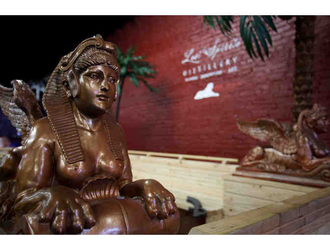 Located in the Los Angeles Arts District, Lost Spirits Distillery is an amusement park for adults. You’ll gather in the lobby where a pair of topiary triceratops spring to life.