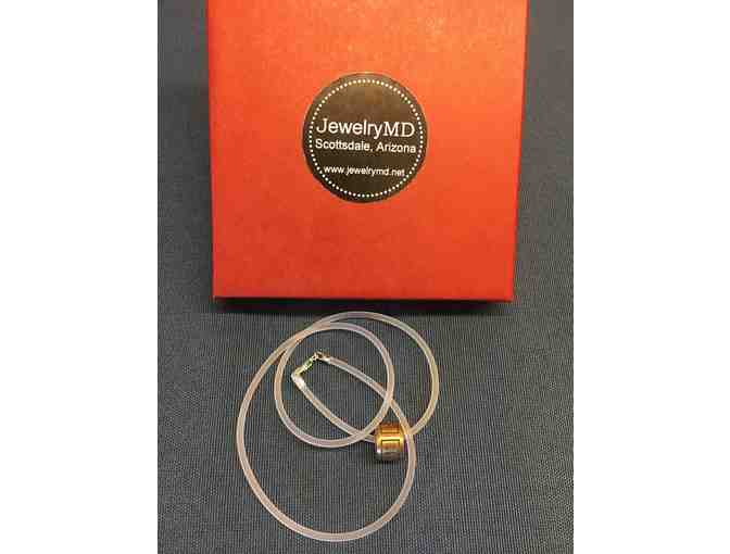 Antique bronze BASIS elements with tsavorite large rolo on 16" clear rubber cord with sterling silver clasp, custom made by a BASIS parent.