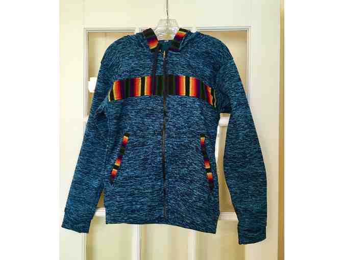 Size medium turquoise sweatshirt with Guatemalan accents.