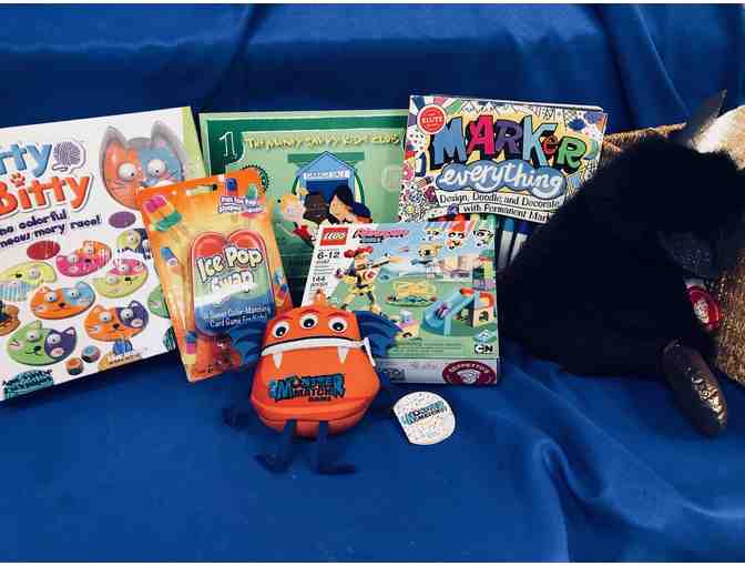 Monster Match Game, Ice Pop Swap Matching Game, Lego Power Puff Girls Set, Klutz Marker Everything kit, Book- Garage Sale Riches, Kitty Bitty Memory Race Game, Stuff Animal