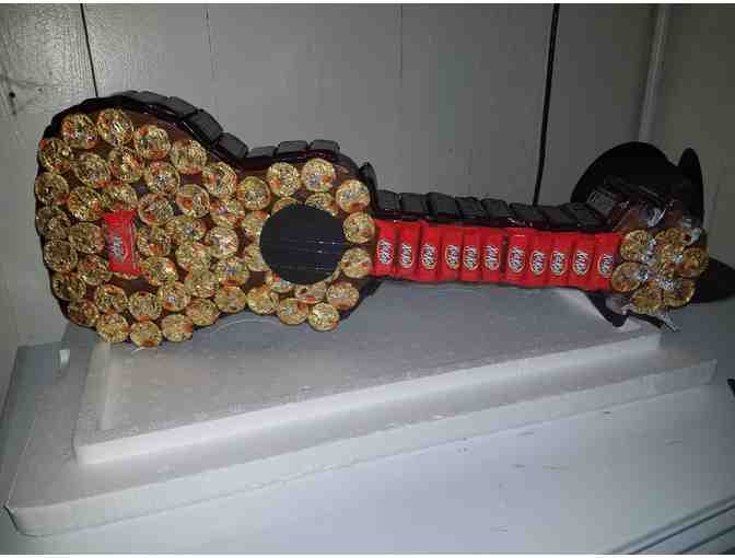 This is a Ukulele covered with some candy favorites! Reese's Cups, Kisses, Hershey's and Kit Kats