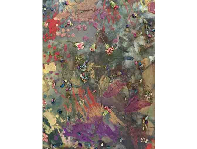 Their journey started in January and explored the base colors of black and white. Over the next several weeks, the Caterpillars added various tempera paint colors of red, blue and yellow .. and watercolors using pink, purple and orange! Then they added textures like sand, flowers, and seashells! The end product is absolutely beautiful! The winning bidder will also receive a picture collage of their child painting on the canvas.