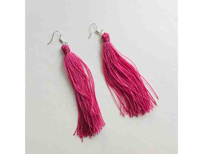 Beautiful pair of pink tassel earrings made in Guatemala.