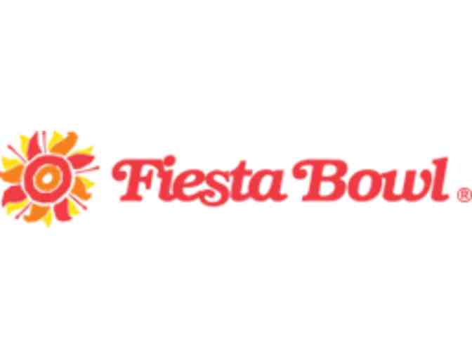 A certificate for four tickets to the 30th Annual Cactus Bowl (Chase Field) and one parking pass. A Fiesta Bowl Charities swag bag (Fiesta Bowl golf tees and ball marker, Fiesta Bowl mascot stuffed doll, gray Fiesta Bowl t-shirt in XL) is also included.