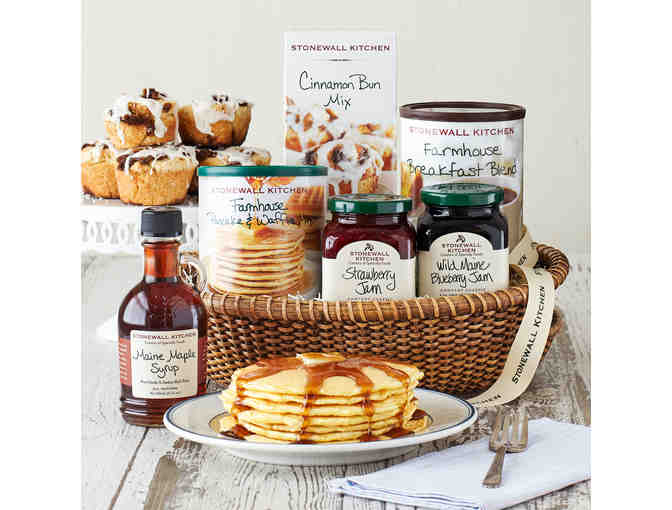 A traditional New England breakfast is a delicious, hearty feast and we've included everything you'll need to experience it for yourself. Start your day off right with our Farmhouse Blend Coffee (16 oz.), Farmhouse Pancake & Waffle Mix (16 oz.), Maine Maple Syrup (8.5 oz.), Wild Maine Blueberry Jam (12.5 oz.), Strawberry Jam (12.5 oz.) and our Cinnamon Bun Mix. This bountiful New England Breakfast arrives in a beautiful Nantucket-style basket, makes a great gift and no one will leave the table feeling hungry.
